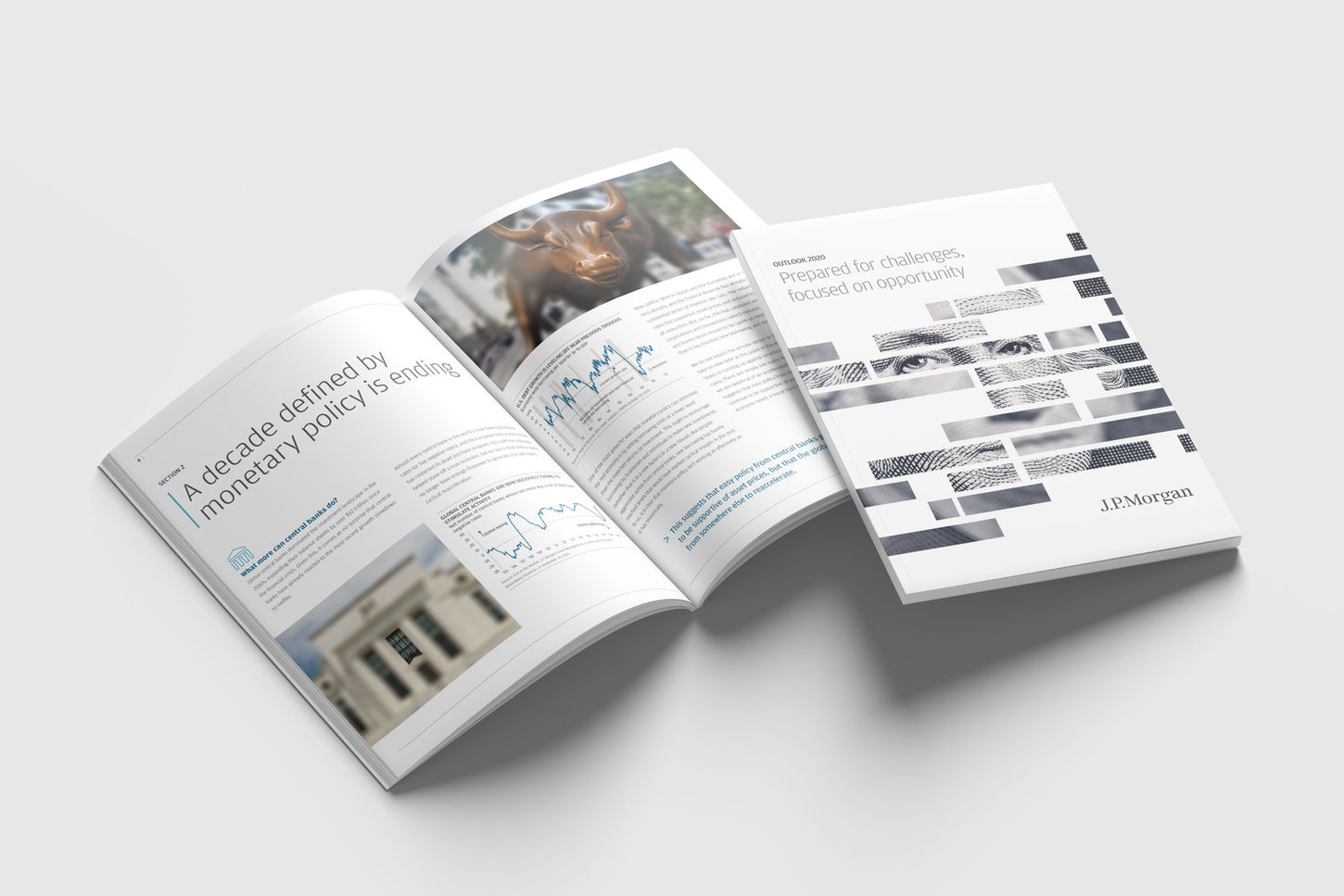 At DRUM Agency, I helped in the conceptualization, design, and creation of J.P. Morgan Private Bank's "Outlook 2020" event. Through collaboration across creative and marketing teams, we were able to create an engaging and memorable experience for attendees. The project went above and beyond the typical Outlook efforts by unifying all relevant materials into a consistent, print, digital, and in-person experience with a unique theme that ties all aspects of the campaign together.